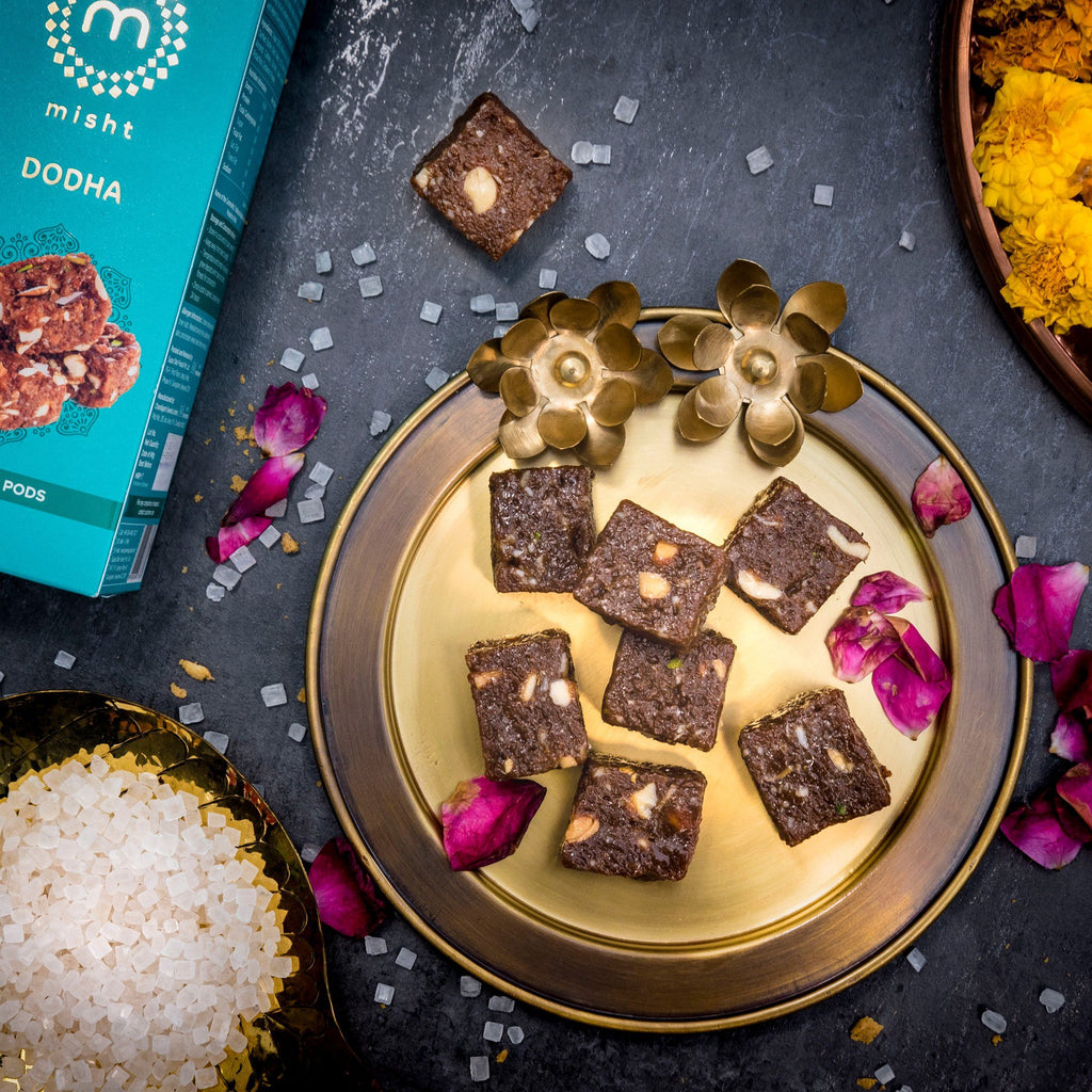 This set of 2 mithai boxes include a box of Chana Barfi, and a box of Chocolate Ladoo Mithai. This delicious mithai box set contains 8 mithai pods in each.