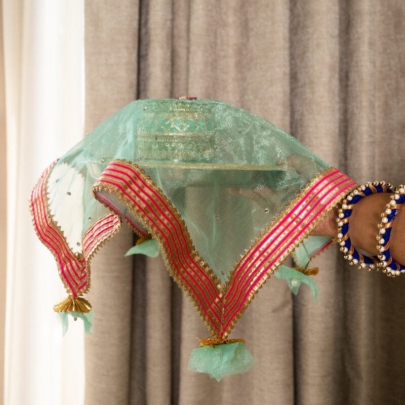 Previous NextThis Meadow Green Serenity Thali Cover is the perfect addition to your pooja ritual. Crafted from high-quality materials, this traditional thali cover is a great way to show reverence and respect to the deities during your pooja ceremony. Perfect for any occasion, this thali cover is a sure way to enhance your pooja experience.